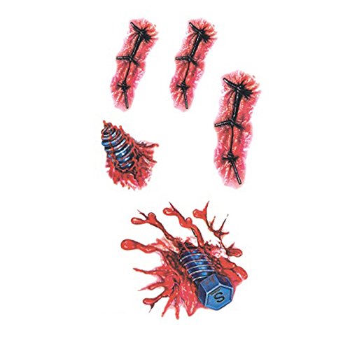 WYUEN 5 Sheets Blood Wound Halloween Body Art Temporary Tattoo Sticker For Men Women Fake Waterproof Temporary Tattoo New Designs 10.5X6cm B-035