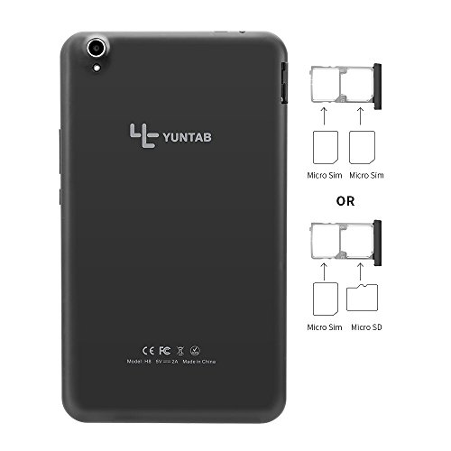 -. Title : Yuntab H8 8inch A53 64bit CPU,1.3Ghz Quad Core Android 6.0,Unlocked Phablet with dual SIM Tablet PC,2G+16G,HD 800x1280,Dual Camera2M+5M,IPS,WiFi,Bluetooth, P-sensor,G-sensor,Support 2G/3G/4G (Black)