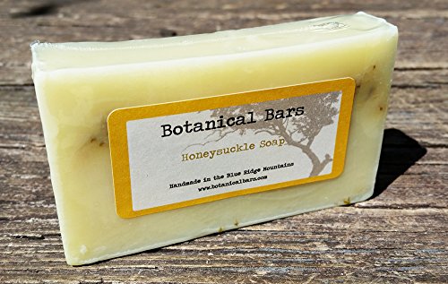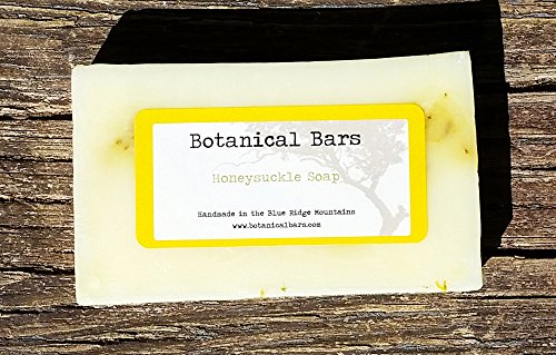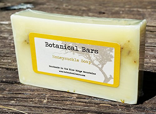 Our Honeysuckle Soap is made with shea butter, dried calendula and honeysuckle and honeysuckle fragrance oil. The dried flowers offer soft exfoliation to help increase circulation. Plus, it just smells great! Botanical Bars products are handmade in Lake Toxaway, NC using natural ingredients. We craft each bar of soap using shea butter or olive oil, essential oils for fragrance, and dried botanicals such as flowers for exfoliants. Some of plants used in our soaps we grow ourselves. We hand pick, dry, and grind them down using a mortar and pestle to preserve the integrity of our botanicals. Our bars produce a rich and soft lather soothing skin, while the natural exfoliants provide a deep clean and leave skin feeling noticeably softer.Feature