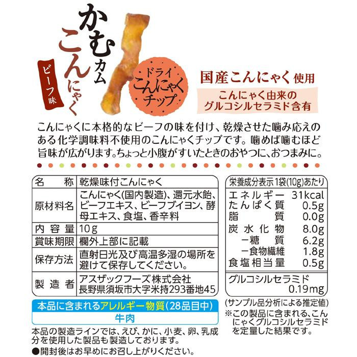 | 原材料 | こんにゃく(国産)、還元水飴、ビーフエキス、ビーフブイヨン、酵母エキス、食塩、香辛料 |