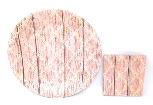-. Title : Pink Moroccan Tile on Rustic Plank Party Plates and Napkins
