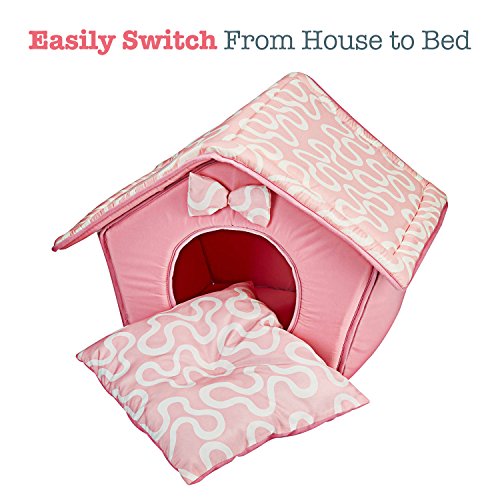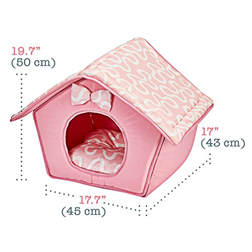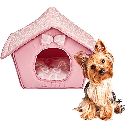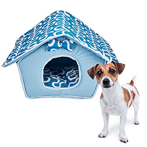 Its shape like a dog house and the top folds down to provide a bed for your beloved dog or cat. It is very well padded and the pad is removable and easy to clean which makes this pet tent a real gem. The real beauty of this dog/cat house is that it comes in 2 colors: Pink or Blue.