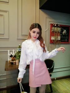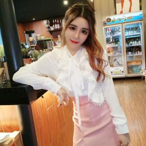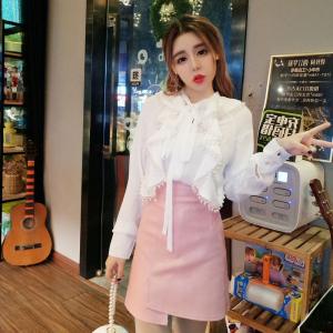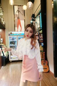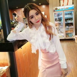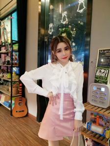 ホワイトカラーとパールの飾りが上品で清楚なブラウスは、ロングスカートと合わせても可愛く着られます☆