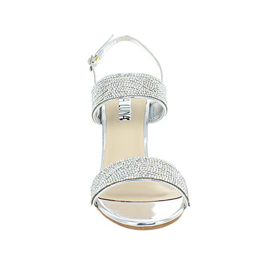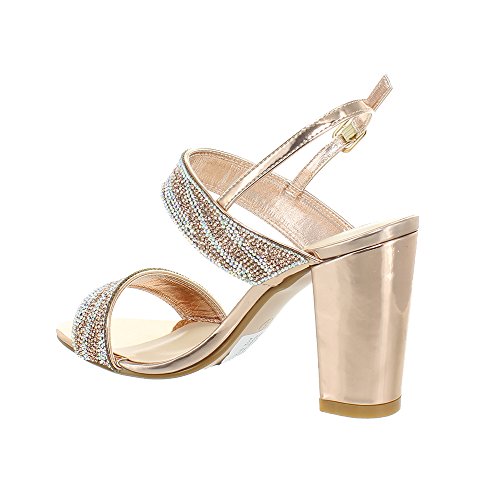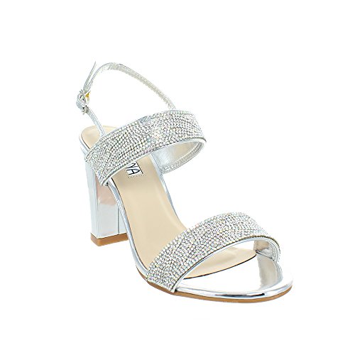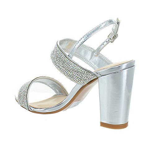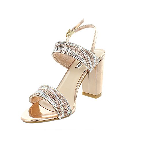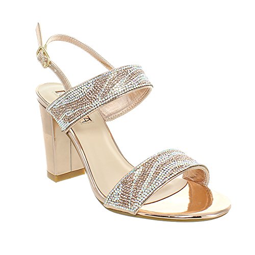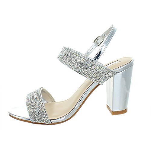 (Urban Heels)/Women's/Sandals/DIRECT FROM USA/Urban Heels Women's Metallic Ankle Strap Rhinestone Block Heel Sandle