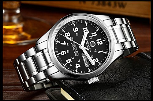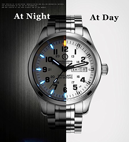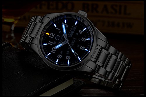 -. Feature : Customer Service: 30 Day money back guarantee for any reason; 12 Month warranty for quality related issues; 24 Month warranty for quality issues. / H3 tritium light source technology, continuous light up to 25 years, clearly display the time at night / Stainless steel case and band, synthetic sapphire glass, high-quality quartz movement from Swiss, precise time, battery life of more than 3 years, 30M waterproof / Case size: 40mm(1mm=0.039"), black dial with date window / The package includes:1 x Watch, 1 x Watch Box,1 x 2-Year Warranty, 1 x User Manual, 1 x Watch Link Remover tool, 1 x Watch Cleaning Cloth
