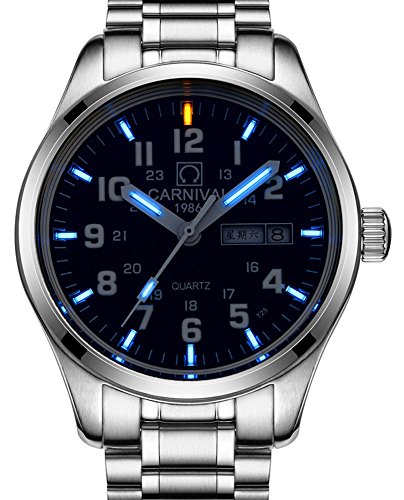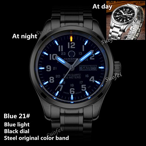 -. Title : Gosasa Men's Tritium Watch Blue Light Sapphire Glass Stainless Steel Quartz Luminous Day Date Wrist Watches