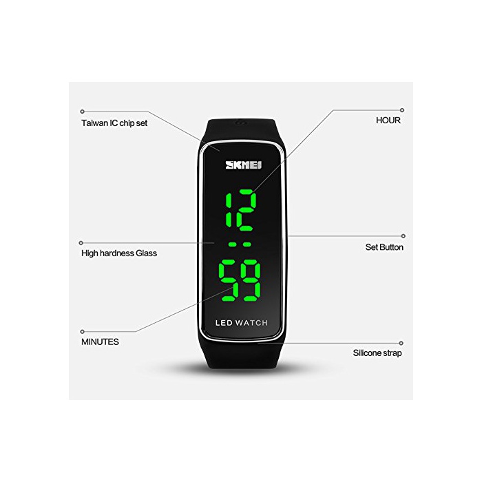 Skmei SKMEI 손목시계 남녀 겸용 경량 스포츠 디지탈 LED 방수 실리콘 밴드 심플 블랙