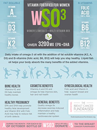 Every day, we hear from customers who have seen incredible results using fish oil for weight loss, inflammation, mental health, and other minor to major ailments. We encourage you to research the many various potential benefits of fish oil, and try it to see how it works for you! What are EPA and DHA? What is a good balance for me?EPA and DHA are Omega-3 fatty acids. They are the good fats and block the actions of the bad fats or Omega-6 fats. EPA's beneficial actions are considered to mainly involve peripheral (non brain) actions. DHA is considered to be brain active. The best ratio is the natural ratio found in fish. Our oils are approximately 2:1 EPA/DHA. What is important is the strength of this synergistic combination. Keep it all natural. Pregnant, and Nursing:WSO3 can assist in maintaining a healthy pregnancy. Post-pregnancy benefits for mother and baby are increased from a combination of vitamins and Omega-3 fats. Get your daily intake of fish oil, Vitamins, A, D3, K2, B6, B12, and folic acid with a formula made specially for women. Liquid vs Gel Capsules:Depending on the product, you would need to take between 10-15 gel caps/day to derive any benefit. Furthermore, gel caps dissolve at different rates that are not optimal for Omega-3 oil absorption and storage in our bodies. Therefore, all our Omega-3 oils are offered in liquid formulation. *Do not take if you are using blood thinners such as Coumadin without consulting your physician. *This product is harvested from the sea and may contain small amounts of shellfish. If you are allergic to shellfish, you should avoid this product. *These statements have not been evaluated by the Food and Drug Administration. This product is not intended to diagnose, treat, cure, or prevent any diseases. 0 |