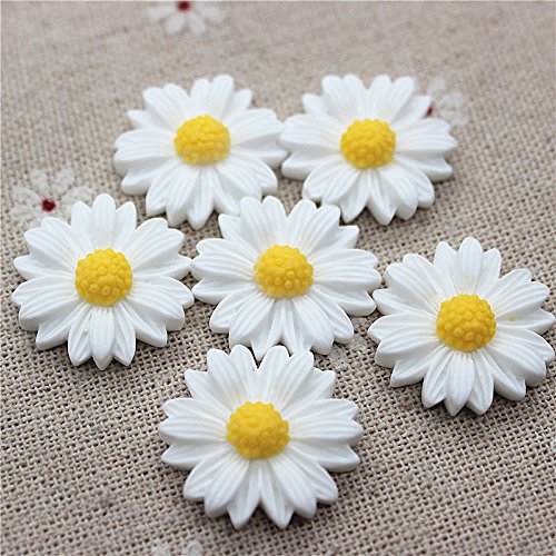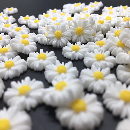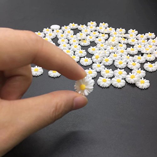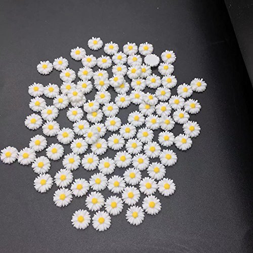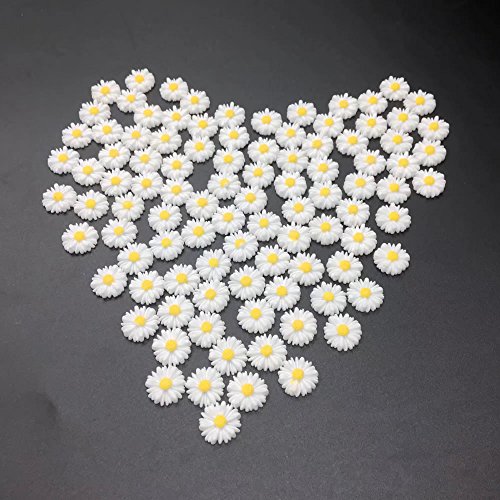 HUELE 12MM white daisy flower resin flatback cabochon DIY jewelry phone decoration,100PCS (Without hole)