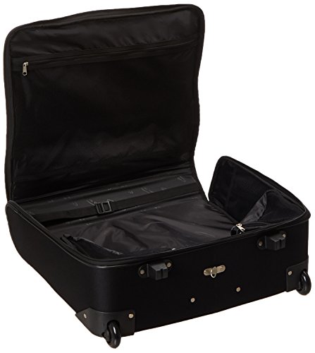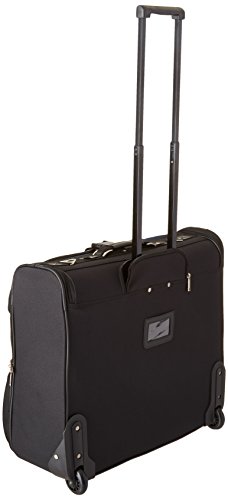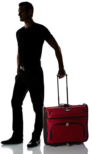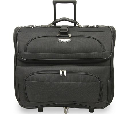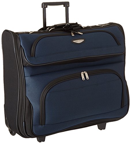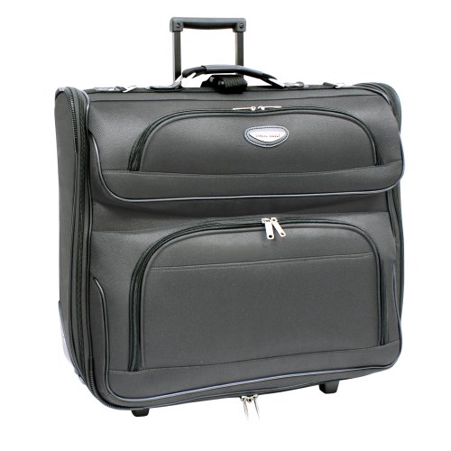 Studio : Travelers Choice Publisher : Travelers Choice Binding : Apparel Product Description The Travel Select Amsterdam Business Rolling Garment Bag is ideal for keeping your clothes crisp and clean while you are traveling. This garment bag is made of industrial quality hardware; 1200D two-tone polyester construction with an EVA reinforced front panel. It features an internal handle system, inline skate wheels, and an adjustable and detachable shoulder strap with a non-slip pad. It has a spacious main compartment with zippered mesh pockets and multiple outside gusseted pockets for easy packing. The convenient tie straps secure items while the fold-out design helps to reduce wrinkles in suits. Plus, the top carry handle is designed for easy lifting and center strap is built in for carrying extra bag. Size: 23”W X 22”H (44” Opened) X 7”D 9.3 lbs. 0