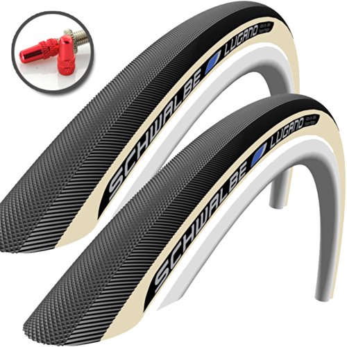 -. Title : 2 x Schwalbe Lugano Tires (A PAIR) 700 x 23 - BEIGE STRIPE - FREE VALVE CAP UPGRADE WORTH $4.99!