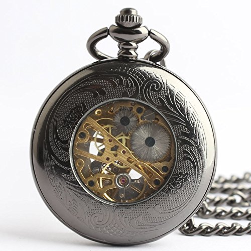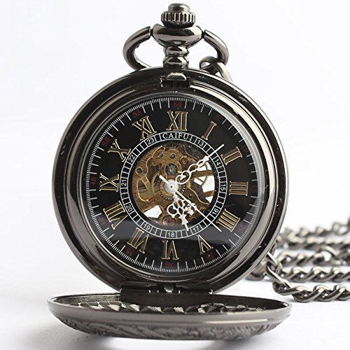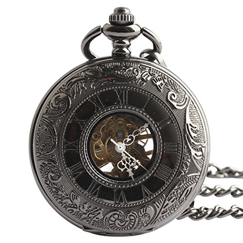 -. Title : TODDCAHALAN Vintage Antiqued Stainless Steel Case Skeleton Mechanical Pocket Watch with Chain F082