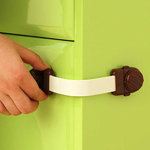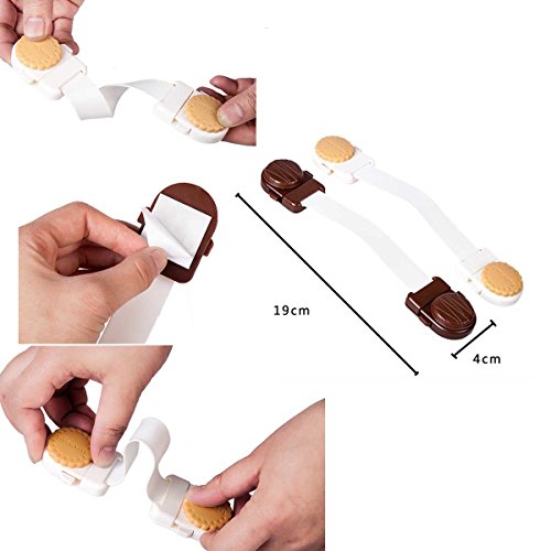 Features: - Color: Dark Coffee / Light Coffee(optional). - Material: PE,PS; BPA Free. - Size: 19 * 4cm / 7.5 * 1.6in. - Flexible, adjustable strap works on both flat surfaces and around corners. - Easy to take it off, which is easy and leaves no damage. - Extremely easy for adults to open with one hand but difficult for your little ones to figure out. - Perfect for cabinets, drawers, fridge, oven, dishwasher, toilet seat etc.