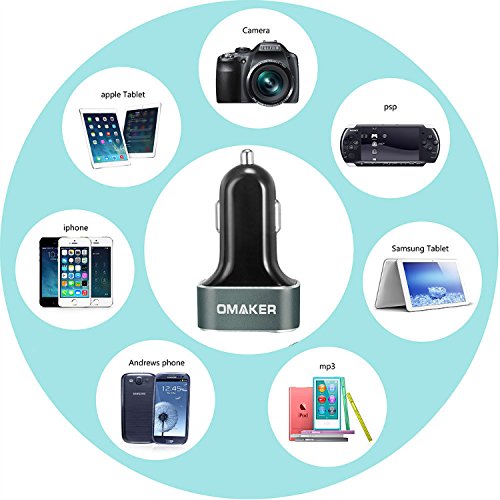 - Feature : Upgrade version of Omaker charger, features 3 Port 6.6A / 33W USB Car Charger can simultaneously charges any 3 tablet or smartphone devices at full speed. / Intelligent technology equipped on all ports to identify each attached device and provide the highest recharging power that the devices can adapt to. / Intelligent circuit design protects against over-heating, over-currents, over charging and short circuit;Charging stops when battery is full. / A Soft Internal LED power indicator is lit to sBuilt in dimmed LED indicator helps visualize the connection status and does not distract you while driving. / Certified by RoHS, CE & FCC; High quality fire proof material & anti-oxidation aluminum pull tab;No radio loss in your car or effect to Bluetooth or Wi-Fi devices.
