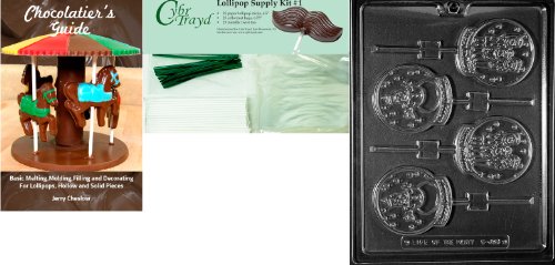 Cybrtrayd Snowglobe Lolly Assorted Chocolate Mold with Chocolatier's Bundle of 25 Lollipop Sticks, 25 Cello Bags, 25 Green Twist Ties and Chocolatier's Guide