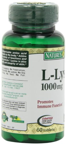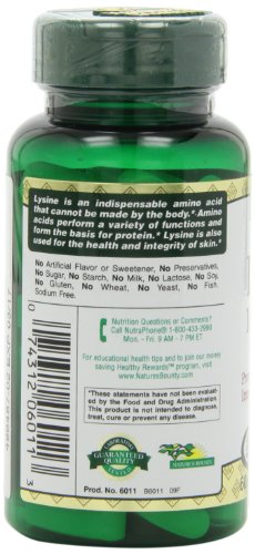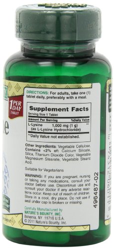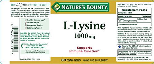 Nature's Bounty L-Lysine is an essential amino acid that cannot be made by your body – you must get it from nutritional sources. L-Lysine is used for the health and integrity of your skin, and helps produce collagen for tissue maintenance.