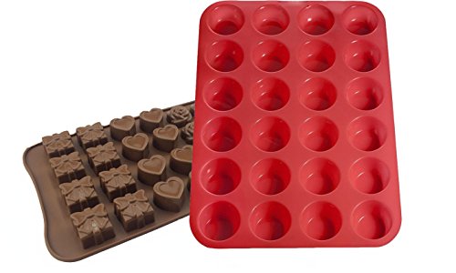 BEAUTYMOOD SILICONE MINI MUFFIN PAN WITH CANDY MOLD, 24 CUP PREMIUM CUPCAKES PAN SHAPES, NON-STICK, BPA-FREE FOOD GRADE SILICON MOLD MATERIAL WITH HEAT RESISTANT UP TO 450° F