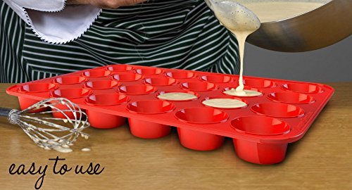 • HEAT RESISTANT MATERIAL; want a super tough, durable Silicone Silicone Mold? The mini muffin tray can be safely used for a range of baking items, with premium food grade silicone material that is completely food safe up to 450° F!