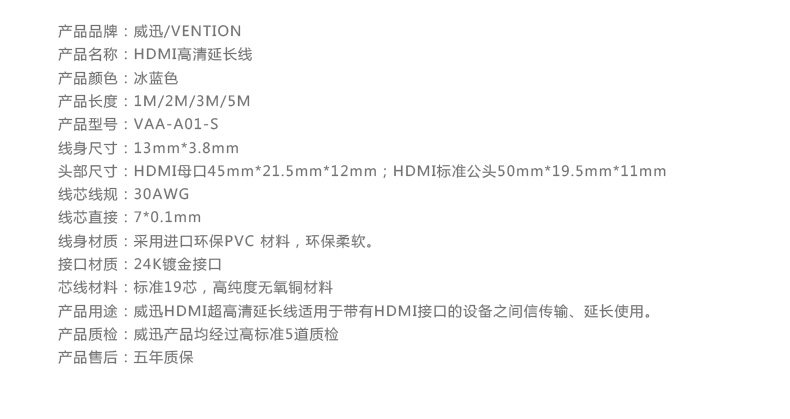 威迅 hdmi延长线 hdmi公对母 hdmi加长线 电脑电视hdim高清延长线