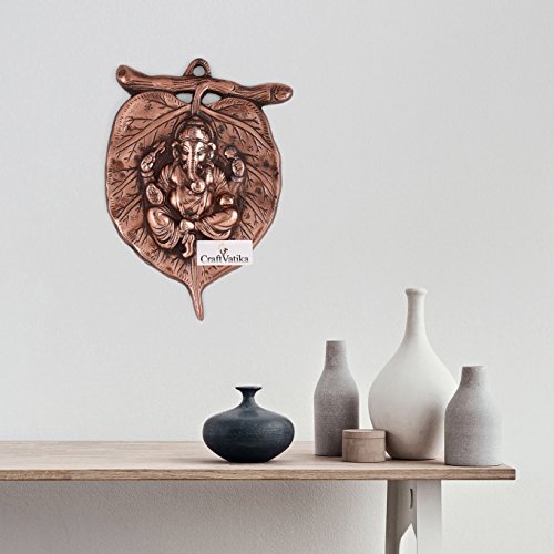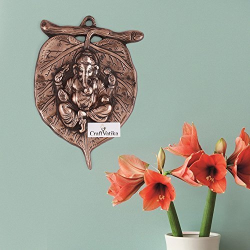 CraftVatika Lord Ganesha Leaf Wall Hanging Sculpture God Ganesh Metal Decorative Ganpati Feng Shui Wall Art