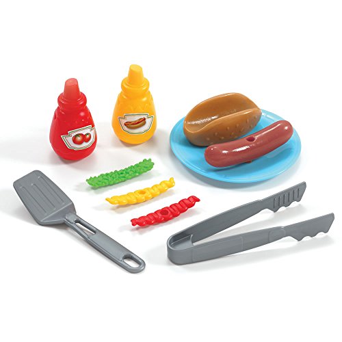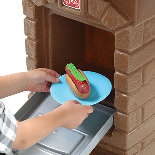 - Feature : Includes a 10 piece Stack 'n Stay Hot Dog Set / Features a molded-in side burner, play sink and oven that can be used as storage / Realistic outdoor brick design