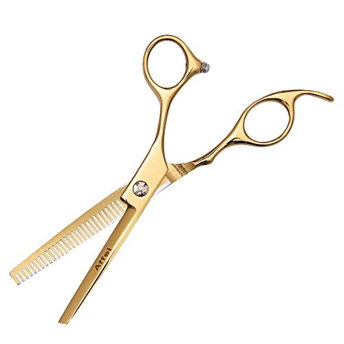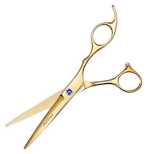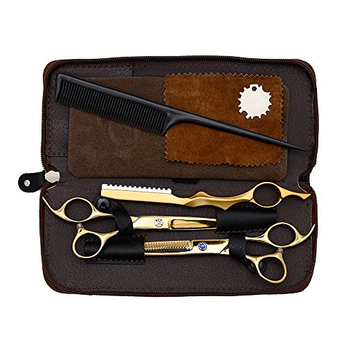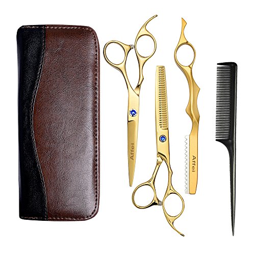 Affei Hair Scissors Professional Hairdressing Barber Cutting and Thinning/Texturising Scissors/Tonsure Shears Set 3 in1 With Leather Case(Gold)