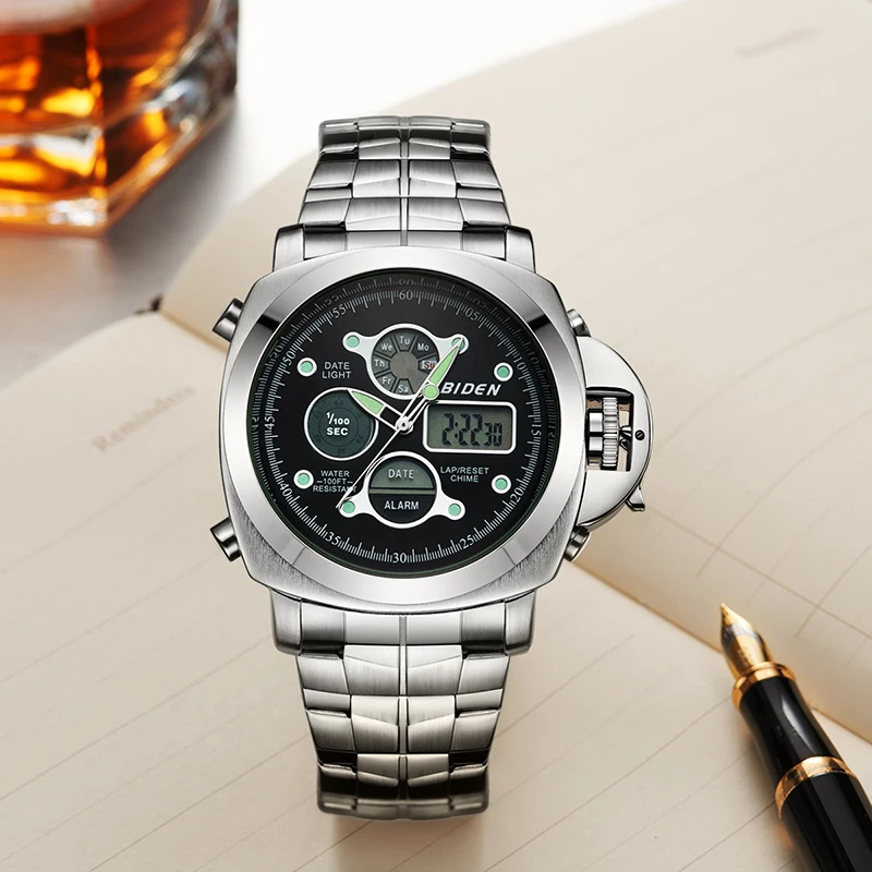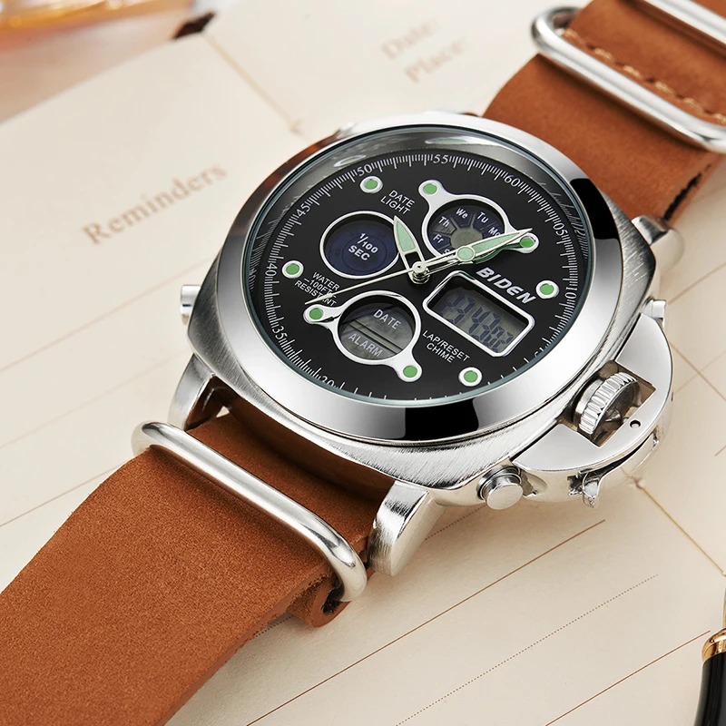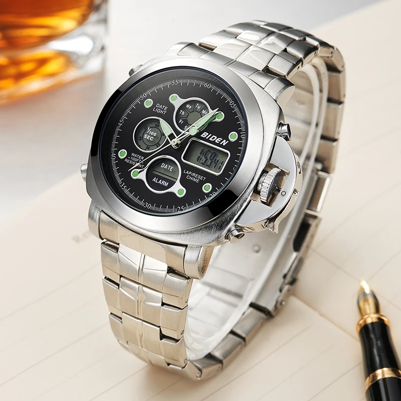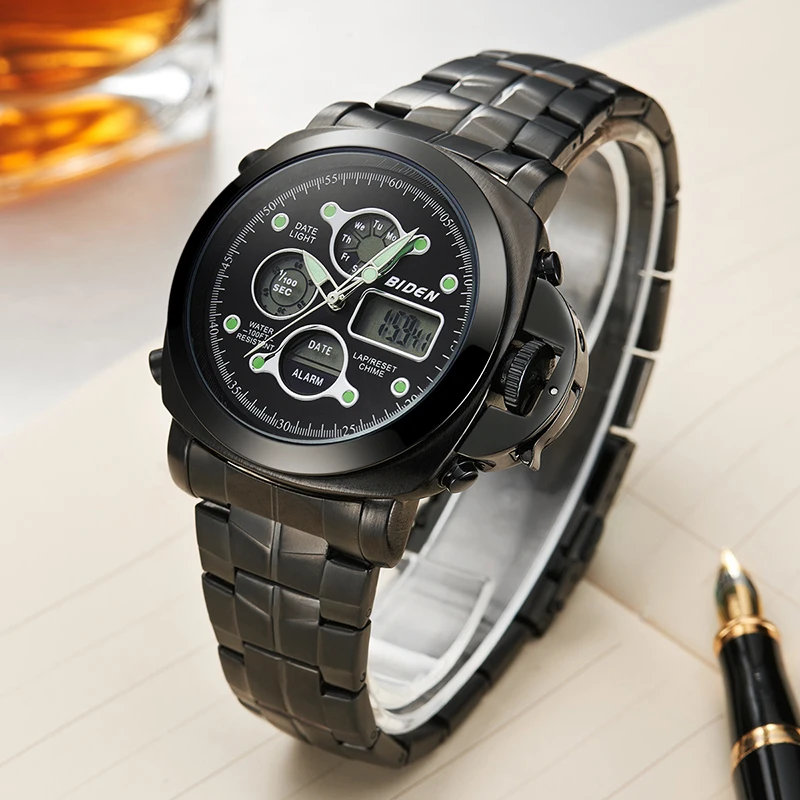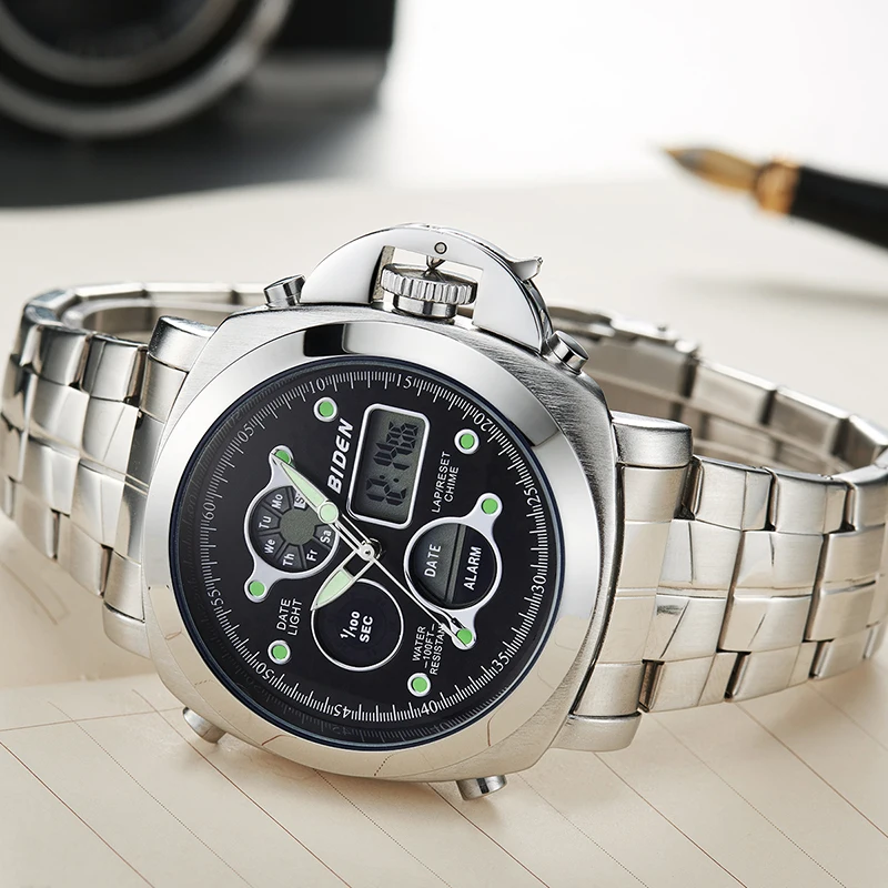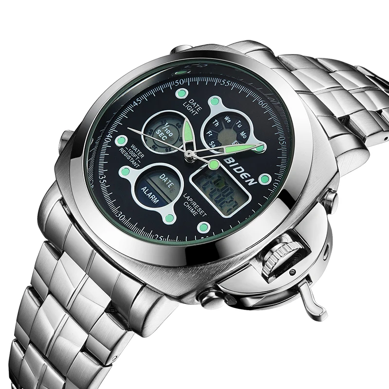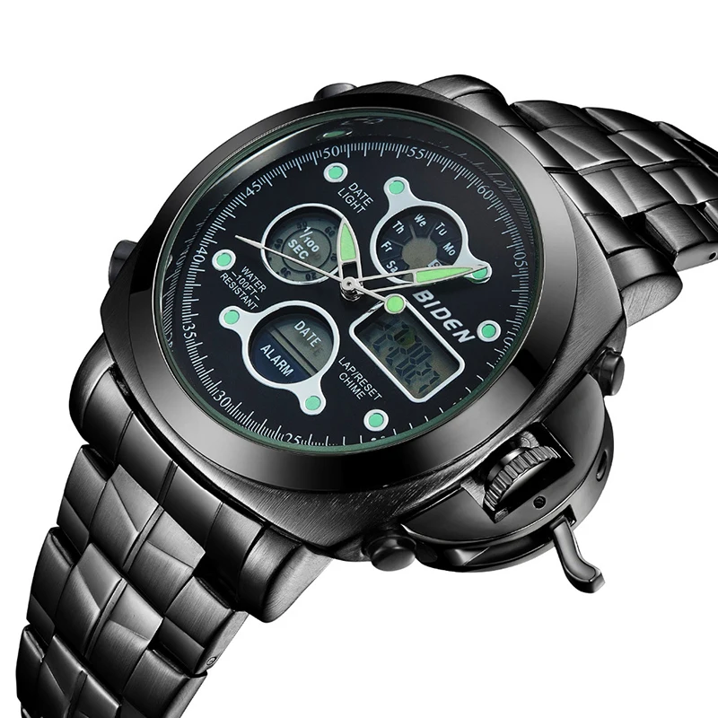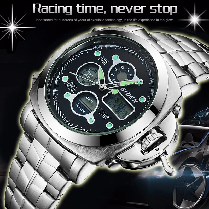 Feature:Water Resistant,LED display,Multiple Time Zone,Back Light,Complete Calendar,Shock Resistant,Chronograph,Luminous Hands,Auto Date,Anti-magnetic,Alarm