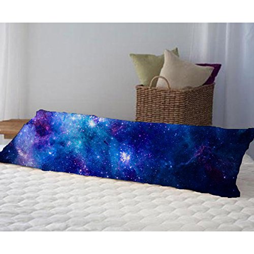 AILOVYO Colorful Pink Blue Galaxy Nebula Pattern Machine Washable Silky Soft Satin Decorative Body Pillow Case Cover, 20-Inch x 54-Inch