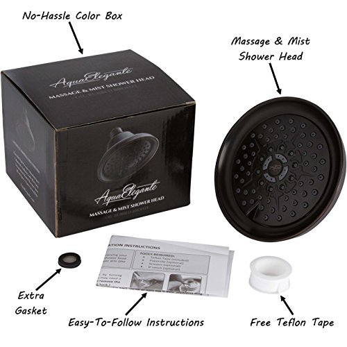 Massage & Mist Shower Head - Great High Pressure, Multifunction, Wall Mount, Adjustable Showerhead - Indoor And Outdoor Modern Bath Spa Fixture - Aqua Elegante - Oil-Rubbed Bronze