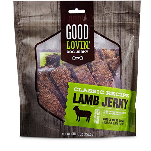 -. Binding : Misc. -. Brand : Good Lovin' -. EAN : 0800443274309 -. Feature : Classic Recipe Lamb Jerky for Dogs from Good Lovin' / Slow-smoked and marinated in its natural juices / Mouthwatering hearty taste / Helps support healthy muscles / High source of protein -. Label : Good Lovin' -. Manufacturer : Good Lovin' -. MPN : WH-LJ16 -. PackageQuantity : 1 -. PartNumber : WH-LJ16 -. ProductGroup : Pet Products -. ProductTypeName : PET_SUPPLIES -. Publisher : Good Lovin' -. Studio : Good Lovin' -. Title : Good Lovin' Classic Recipe Lamb Jerky Dog Treats, 16 oz. -. UPC : 800443274309