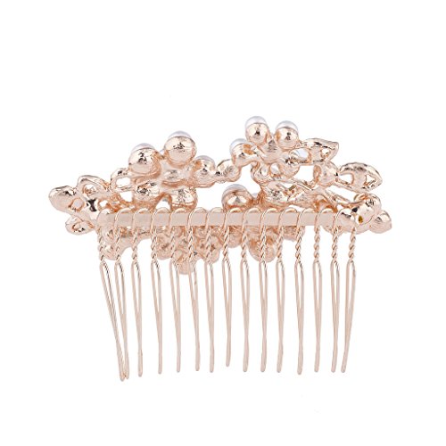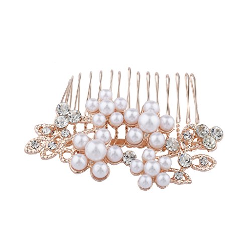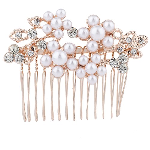 Lux Accessories Rose Goldtone Rhinestone Faux Pearl Flower Leaf Hair Comb