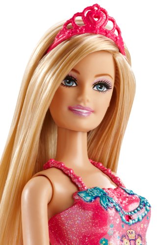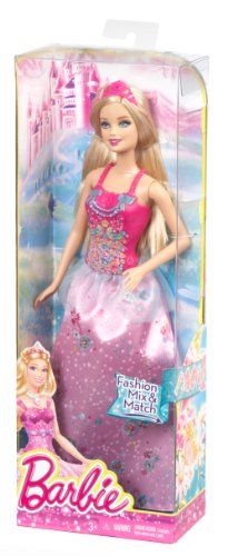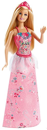 - This Barbie princess is dressed in a full-length gown with a detailed glittery bodice perfect for a ball