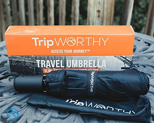 -. Title : TripWorthy Travel Umbrella - Windproof Design Compact Lightweight Durable with Auto Open & Close Feature Convenient for Travelers or Professionals - Great for Men or Women