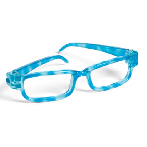 - These rectangular glasses, made to fit 18" dolls, have blue “tortoise” frames with plastic lenses