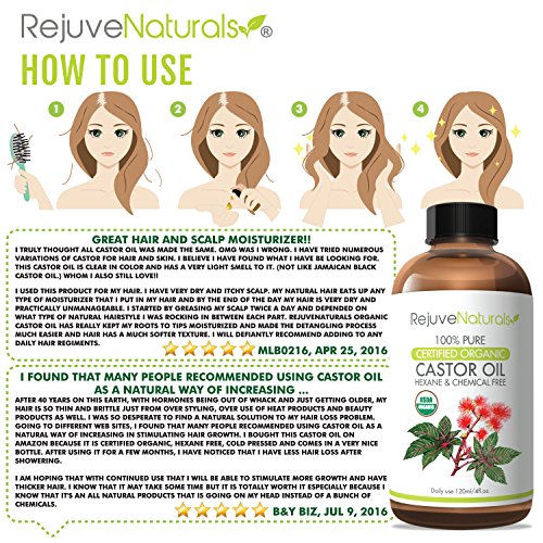 RejuveNaturals Certified Organic Castor Oil is free of GMOs and pesticides, so you don't have to worry about putting toxic chemicals on your skin & hair. It's also vegan & cruelty-free.