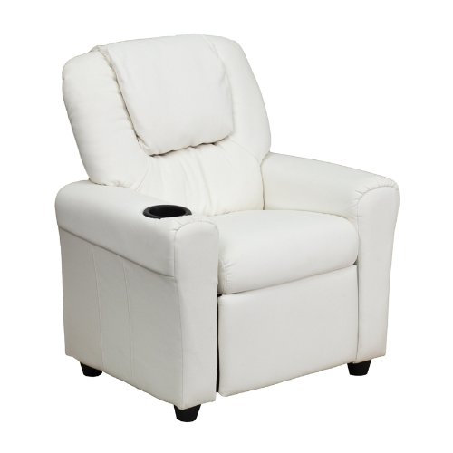 Studio : Offex Publisher : Offex Binding : Kitchen Product Description Kids will now be able to enjoy the comfort that adults experience with a comfortable recliner that was made just for them! This chair features a strong wood frame with soft foam and then enveloped in durable vinyl upholstery for your active child. Choose from an array of colors that will best suit your child's personality or bedroom. This petite sized recliner is highlighted with a cup holder in the arm to rest their drink during their favorite show or while reading a book. [DG-ULT-KID-WHITE-GG] Child's Recliner. Overstuffed Padding for Comfort. Oversized Headrest with Additional Headrest Cover Included. White Vinyl Upholstery. Easy to Clean Upholstery with Damp Cloth. Cup Holder in armrest. Solid Hardwood Frame. Raised Black Plastic Feet. 90 lb. Weight Limit. CA117 Fire Retardant Foam. Safety Feature: Will not recline unless child is in seated position and pulls ottoman 1' out and then reclines. Safety Feature: Will not recline unless child is in seated position and pulls ottoman 1' out and then reclines. 0