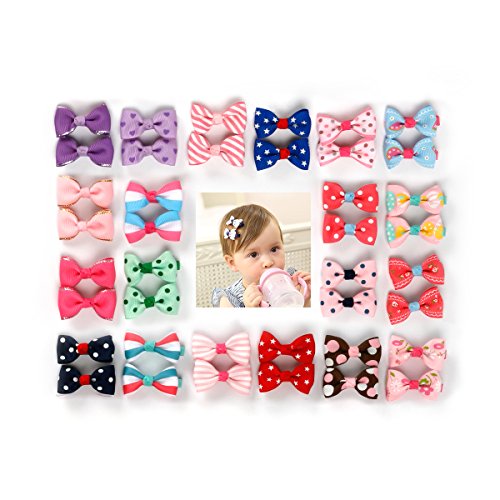 Specifications: ? Material: Alligator Clips with hair Bows ? Colors: 20 different Hair Bows Clips Included as shown in the photo, each pattern 2 pieces(1 pair). ? size: about 2.0' hair clips. ? Quantity: 40 pcs(20 pairs)/bag.