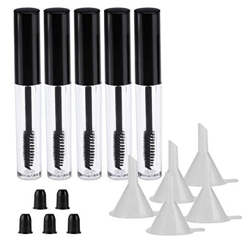 Frcolor 5pcs 10ml Empty Mascara Tube + 5pcs Funnels and Transfer Pipettes Set for Castor Oil