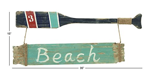 Deco 79 87986 Wood Beach Oar Wall Decorative Sign, 35" x 15"