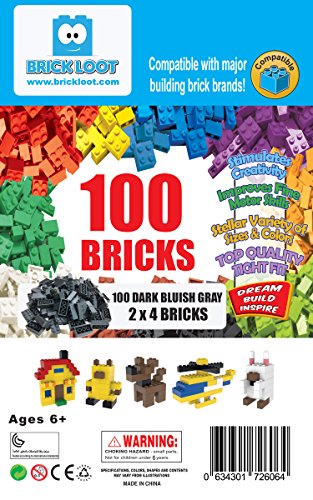 -. Feature : GREAT VALUE: 100 Large 2x4 dot / studs Compatible Bricks / COMPATIBLE - Brick Loot bricks are compatible with Mega Bloks, L.E.G.O* and major building brick systems. Each brick has a guaranteed tight fit, so you may build and create in an easy and safe way. / COLOR: DARK BLUISH GRAY / STRONG AND DURABLE: Custom molded! and made of safe 100% Quality ABS plastic. Guaranteed to hold up! / CREATIVITY: Let your imagination run wild and build anything you can dream of.
