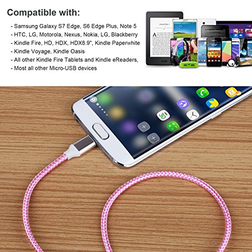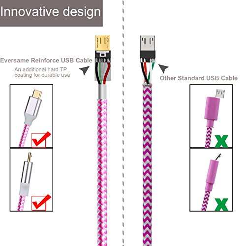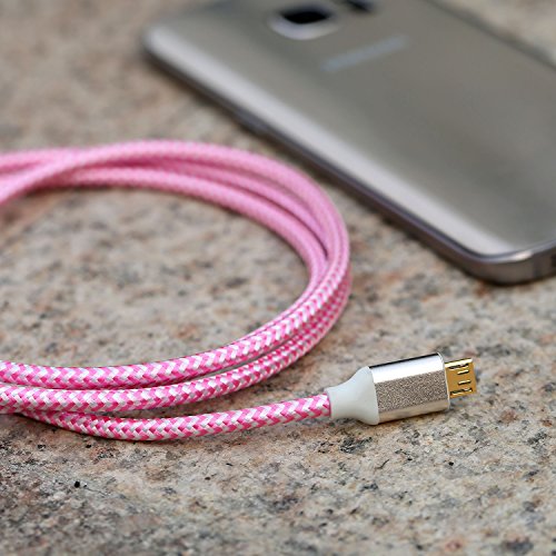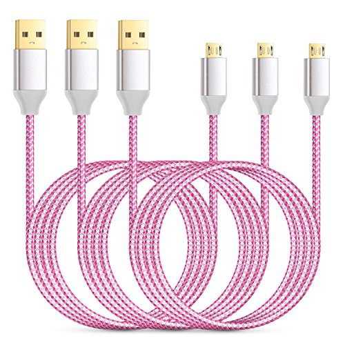 Eversame 3-Pack 6ft/1.8M High-Speed Nylon Braided USB2.0 A Male to Micro B Cable with Aluminum Shell and Gold-Plated Connectors for Samsung, LG, HTC and Other Tablet Smartphone-Pink