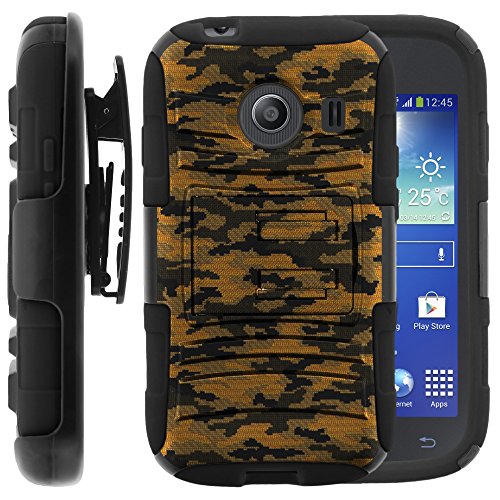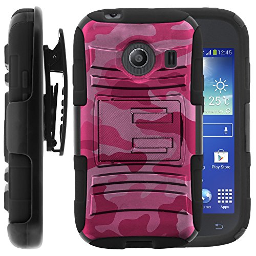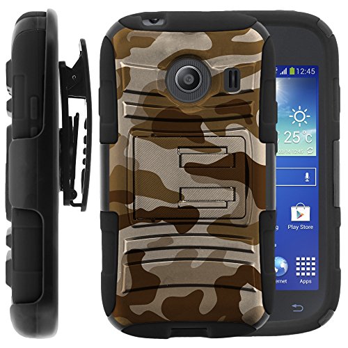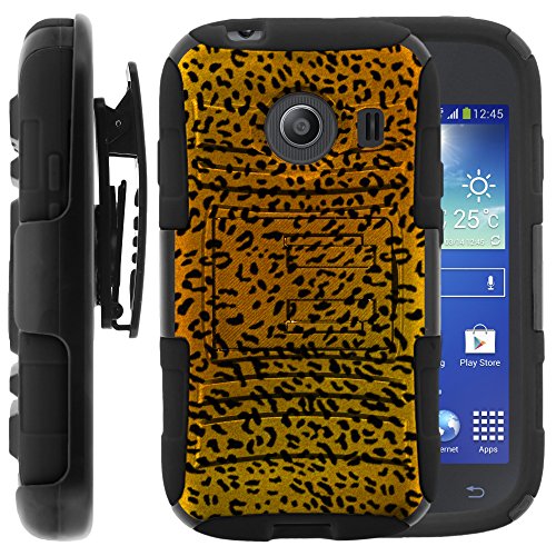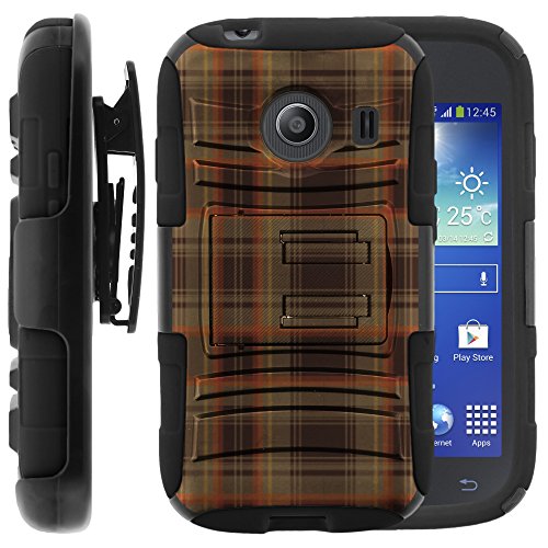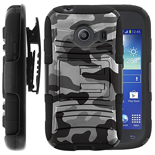 Design -- The case itself will fit snugly onto your phone, with all features of your phone still accessible, and funactionable. This hybrid Armor case comes in 2 layers; the interior is made up of silicone skin gel, while the exterior is made up of hard polycarbonate (PC) plastic. Built along the hard polycarbonate plastic is the kickstand, which, when not in use, can be pushed back into the case.