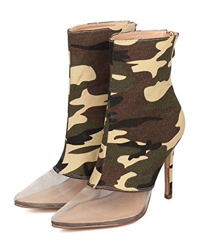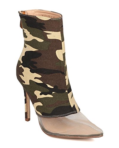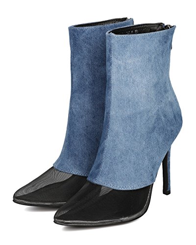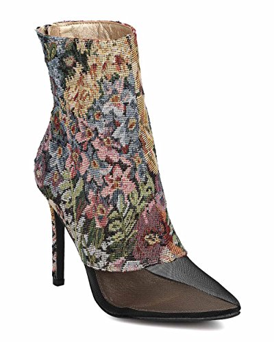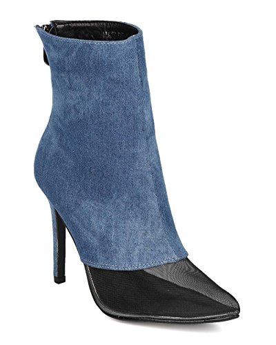 Women Mesh Toe Ankle Boot - Stiletto Bootie - Mixed Fabric Heel Bootie - HK67 By Cape Robbin