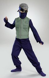 Kakashi Quality Child 4 6 :Two tone, zipper front jumpsuit, fabric mask, fingerless gloves and Naruto Ninja Clan headband.