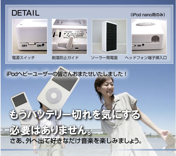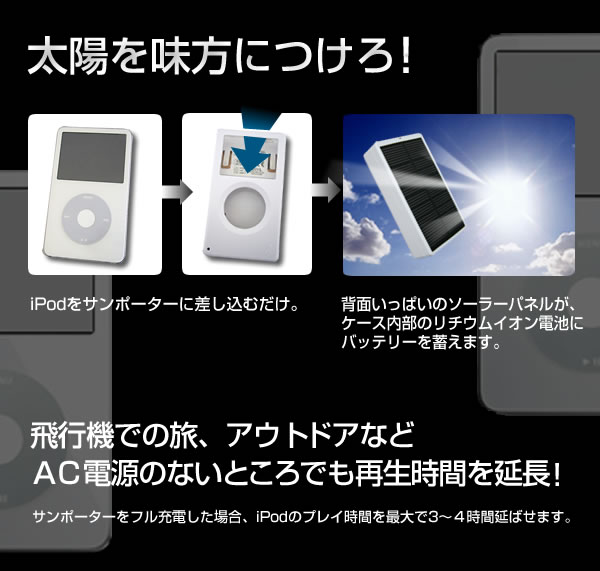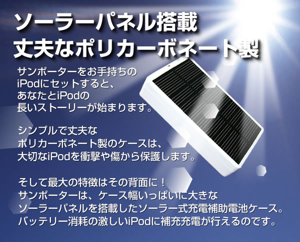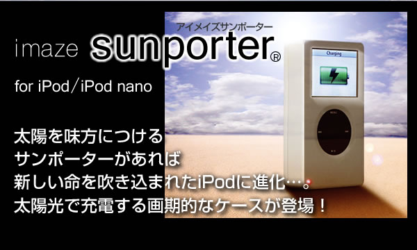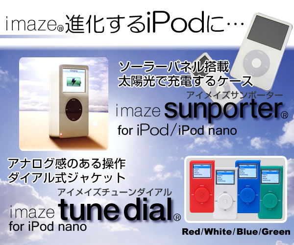 imaze(アイメイズ)シリーズのiPodケースは単に衝撃や傷から守るだけではありません!「サンポーター」は、なんとソーラーパネル搭載。太陽の力で充電ができます!「チューンダイアル」は立体ダイアルでレトロな雰囲気!どちらも注目間違いなし!サイズ/68.5×122×26.5mm 重量/104g※お届け地域により、別途運賃がかかる場合やお届けできない場合がございますので、お問い合わせ下さい。