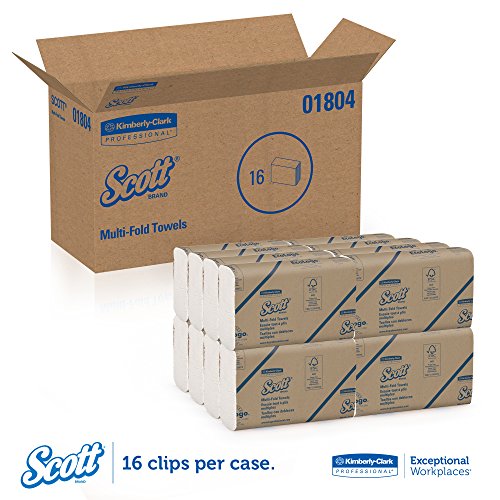 The Kimberly-Clark Scott 01804 disposable white folded paper towel comes in packs of 250 towels, is made of pouches of loosely packed paper fiber for absorbency, is one ply to help reduce waste, and has a multi-fold design to facilitate stacking and unfolding. The paper towel is suitable for single-use general-purpose cleaning and drying applications in office, commercial, and residential environments, among others. The unfolded towel measures 9.2 inches wide x 9.4 inches long, and is compatible with many multi-fold dispensers (sold separately). This paper towel is manufactured with a chlorine-free process. The paper contains 60% recycled fiber with a minimum of 40% post-consumer waste content to meet EPA guidelines for post-consumer waste in paper towel products. The towel has Forest Stewardship Council (FSC) Mix certification, which ensures that the wood fiber used to make it comes from a combination of FSC-certified forests, controlled sources, and post-consumer waste. It complies with the Ecologo hand towels standard CCD-086 for resource and energy conservation and reductions in harmful emissions when compared with other hand towel products.