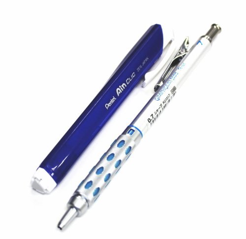 Pentel Graph Gear 1000 Automatic Drafting Pencil, 0.7mm Lead size, Brushed Metal Barrel/PG1017/ & Pentel Ain Clic Retractable Pen-type Triangle Eraser Professional Value set(with Values Japan Original Discription of Goods)