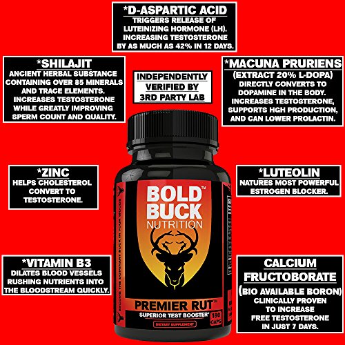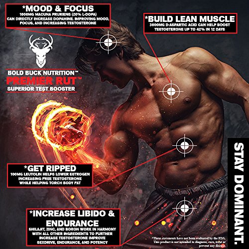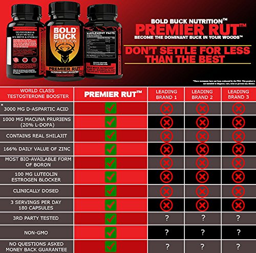 PREMIER RUT Testosterone Booster for Men! Best Male Test Supplement Guaranteed to Build Strength, Stamina, and Energy – 7 Powerful Ingredients for...