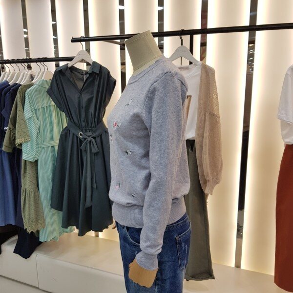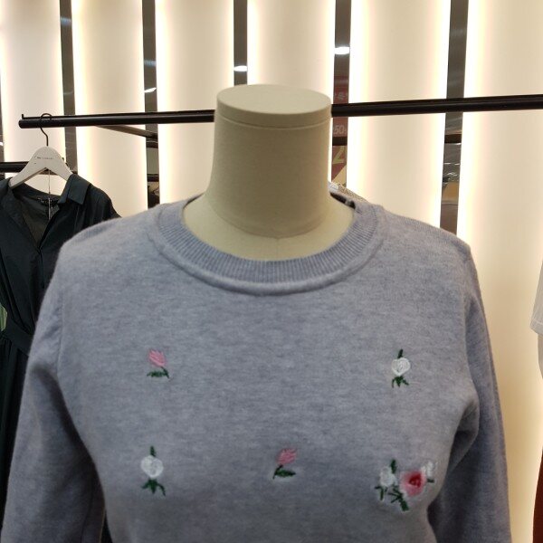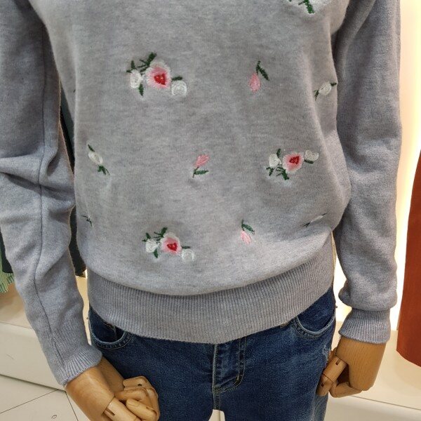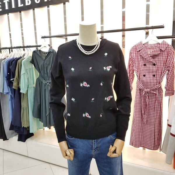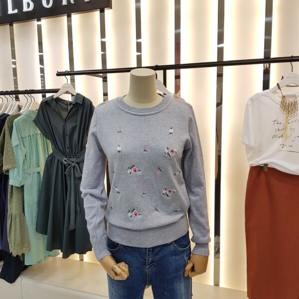 플라워 자수가 포인트 라운드니트입니다.튀지않고 은은한 패턴으로 여러 아이템과 매치하시기 좋습니다.