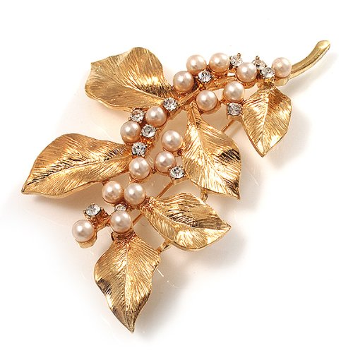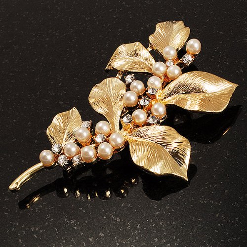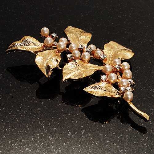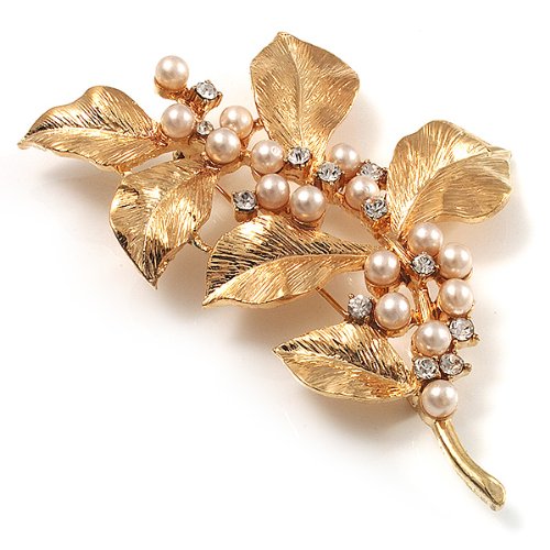 -. Feature : Occasion: anniversary, cocktail party, mothers day / Metal Finish: gold plated / Material: pearls / Gemstone: faux pearl, swarovski crystal / Theme: floral, leaf